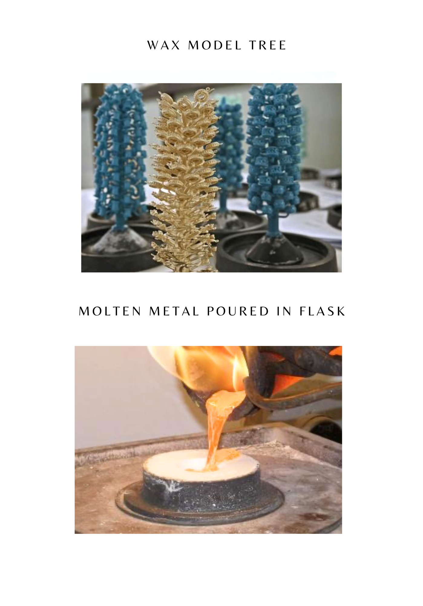 Molten metal (casting grain or recycled metal) is poured in to create your jewelry. The casted jewelry is clipped from the tree sanded and polished - (images sourced from Pinterest).